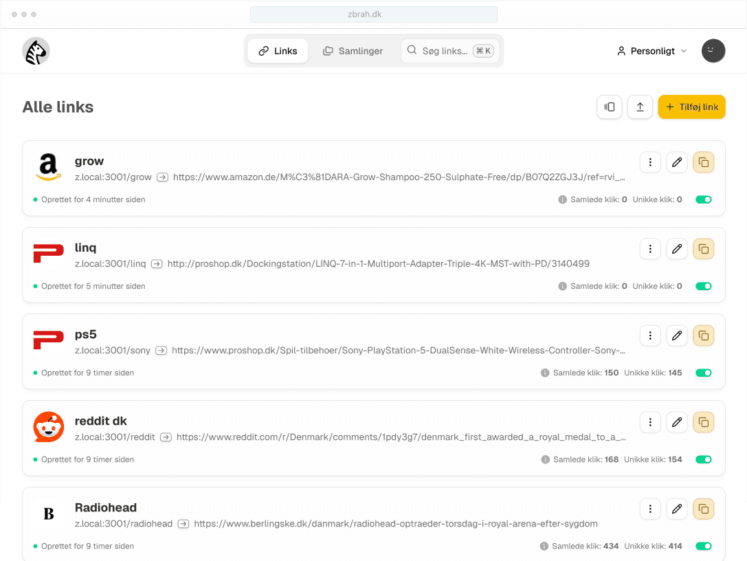 - Create short links using the shortest TLD available - z.dk